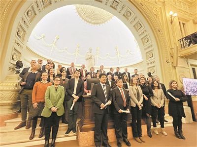 法国国家医学科学院向沈振亚教授和胡士军教授(前排中间)授予“夏邦克-杜博赛”奖。本报记者李宏策摄